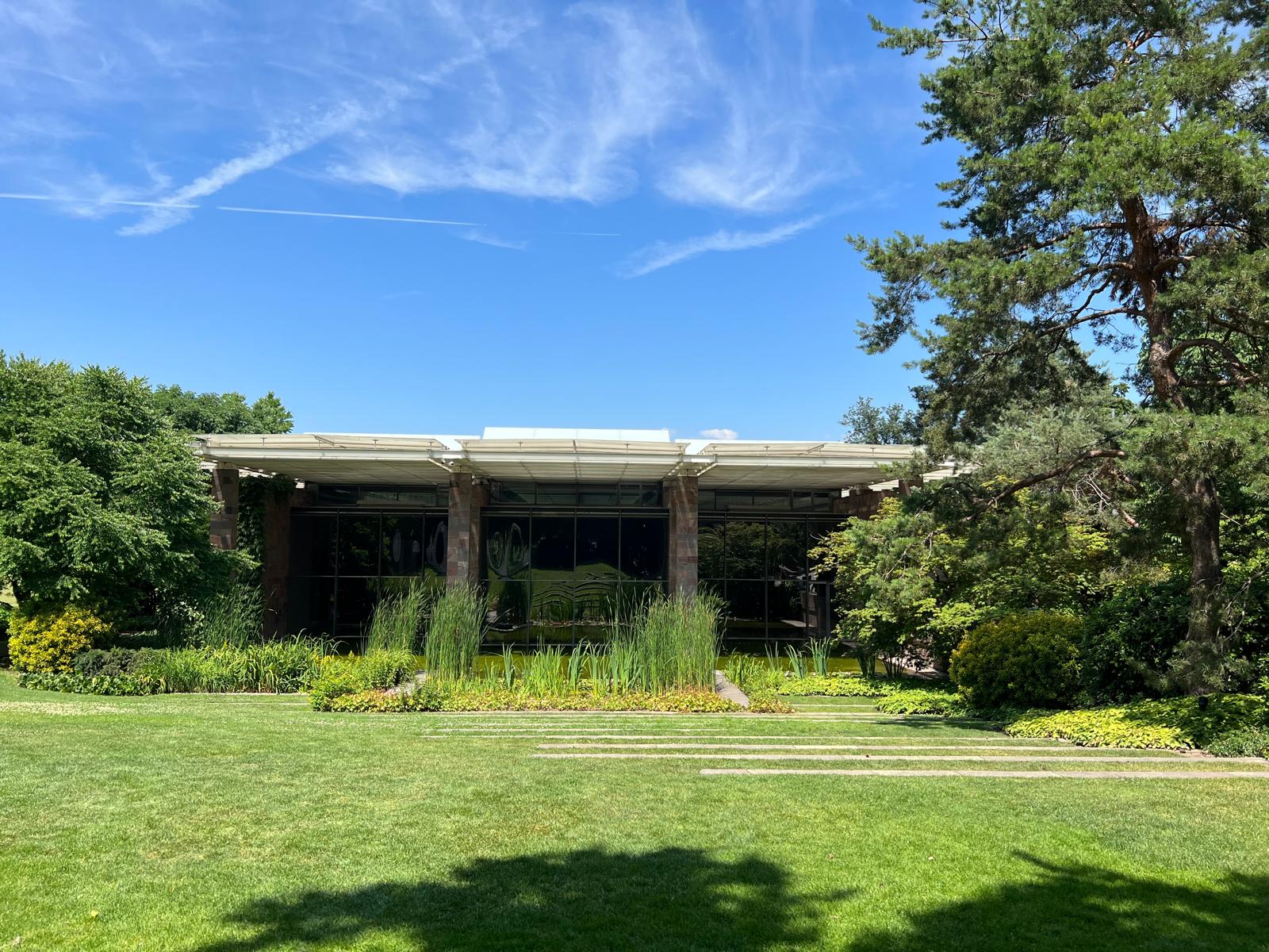 La visite commence dans les jardins, où l’architecture de Josep Lluís Sert se mêle à la végétation méditerranéenne.
